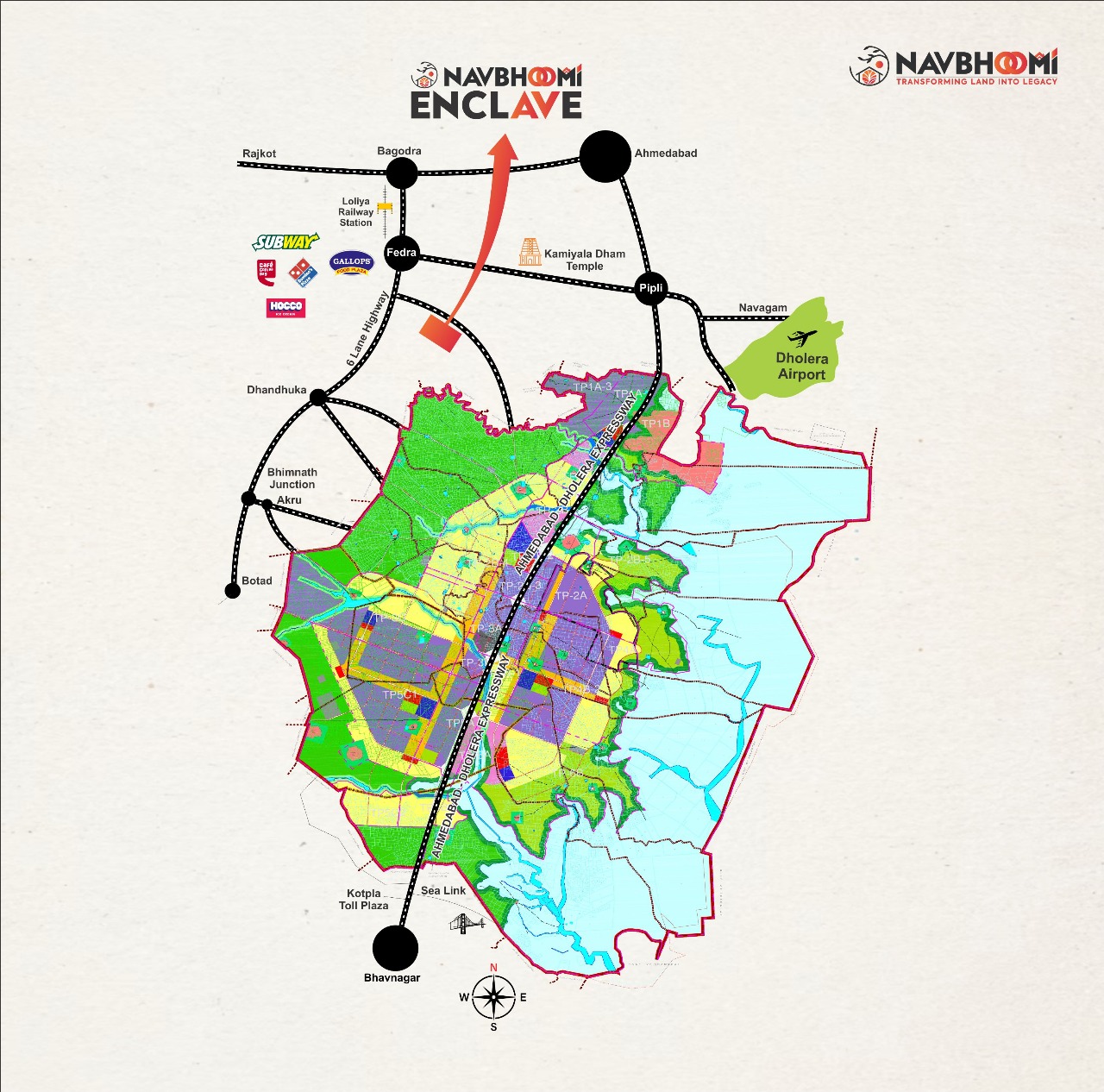 Dholera SIR, The world's biggest Special Investment Region and a part of the DMIC. The First planned SMART CITY with a total area of 920 sq.kms. and Development Area 567 sq.kms. Dholera SIR advocates its supremacy in terms of investment opportunity and development prospective. With kind of infrastructure, connectivity and growth plan Navbhoomi Enclave will come up to as an ideal place to dwell as well as invest.